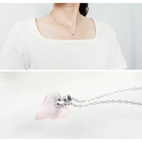ペンデュラムにも似た、シャープなフォルムにカットされたローズクォーツのネックレスです。