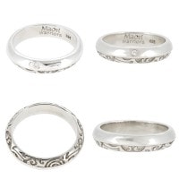 力強いトライバル模様を片面に彫り込んだ、細身のシルバーリングです。