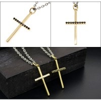 メンズアクセサリー > ネックレス・ペンダント > その他デザイン > ★ 送料無料 ★【PMR】 イエローゴールド コーティング ジルコニア クロス シルバーネックレス