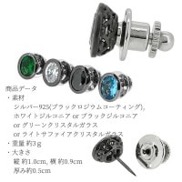 素材(地金)別で探す > シルバー925/950/スターリング > カットカラーストーン アラベスク オーバル シルバーピンブローチ ラペルピン メンズ ピンブローチ ジルコニア ピンズ ピンバッジ