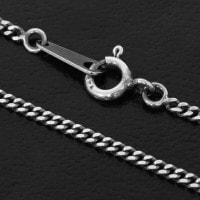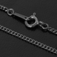 こちらはシルバー925のチェーンを硫化させることで、従来の銀色とは趣の異なるシックでハードな表情に仕上げた、独特の渋い風合いが魅力のチェーンです。
