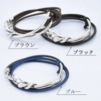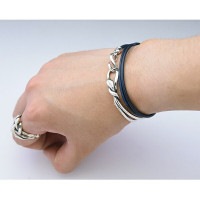 モードな雰囲気が漂うシンプルなワイヤー状のシルバーパーツと、上質の革ヒモが上手くマッチしたブレスレット。