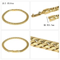 メンズアクセサリー > ブレスレット・バングル > ブレスレット > その他シンプルチェーン > クレイジーエンジェル Crazy Angel サージカルステンレス ゴールドカラー 6面カットダブル喜平チェーン 幅5.7mm 18cm ブレスレット