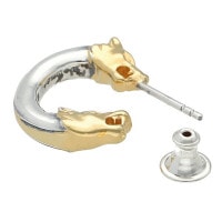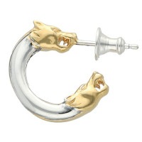 プレーンなフープの両端に、表情まで細かく彫刻した狼の顔が配されたブランドの世界観を感じさせるピアス。