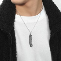 両面が使えるリバーシブルデザインのフェザーペンダントです。