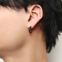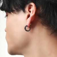 ブラックコーティングが施されたインパラホーンのフープピアス、緩やかな曲線がブランドらしいアイテム。