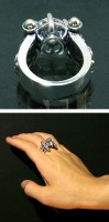 中央に大きなジルコニアを留めた、神殿をイメージさせる作りのリングです。ボリューム・存在感ともに抜群で、両サイドには第2のブランドイメージになりつつあるエンジェルをデザイン!