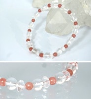 水晶の合間にきらめく、鮮やかなピンク色のインカローズが印象的なブレスレット。